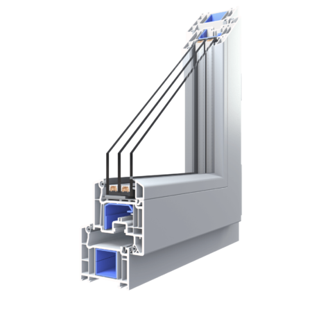 5-Kammer-Rahmen- und Flügelprofil mit einer Einbautiefe von 70 mm.